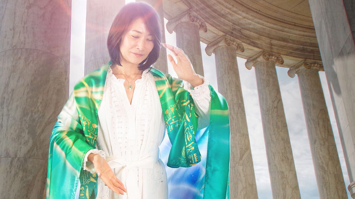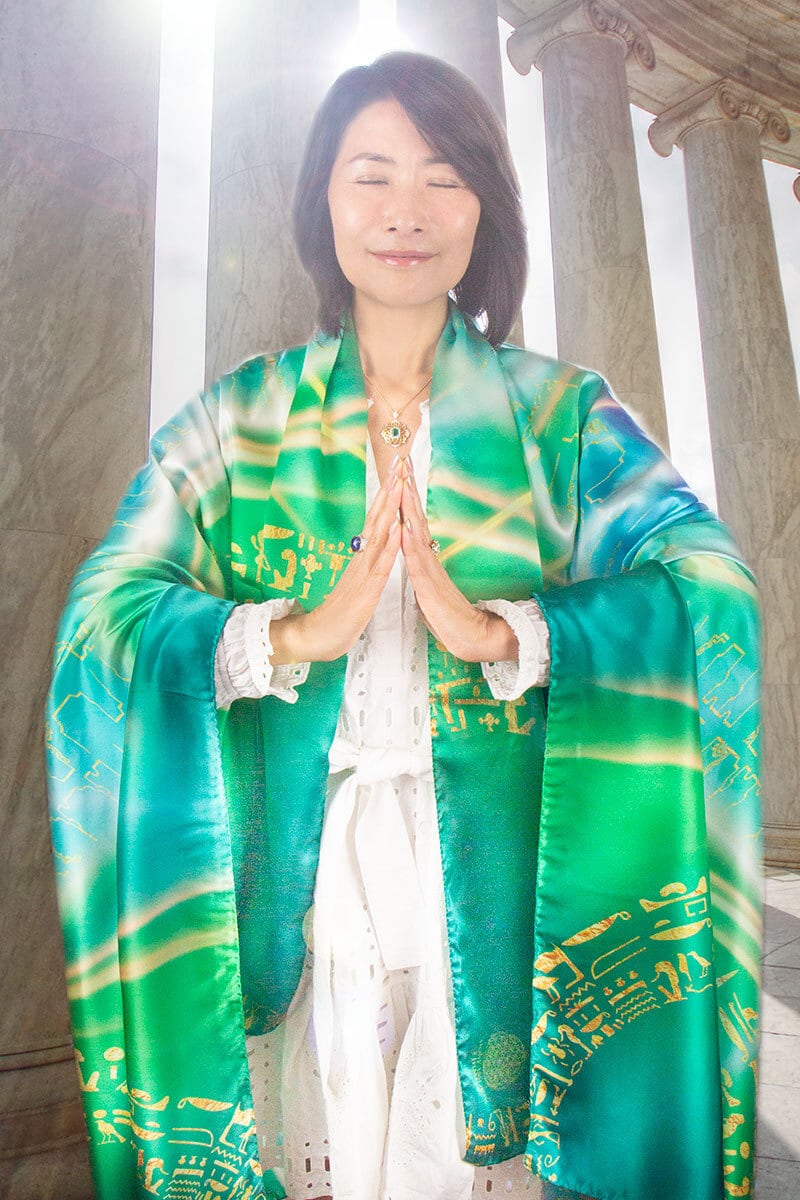このスカーフのエネルギー・マトリックスは、アトランティス時代の記憶を呼び覚まし、霊的錬金術の道に呼ばれている魂の記憶を目覚めさせます。スカーフに宿るエネルギーは、今は姿を隠した神殿のささやき、時を越えて光のイニシエートたちが伝えてきた教えを語ります。そう、それはまさにあなたのこと。今こそ完全に思い出すとき。愛と共に、真実を生きるとき。