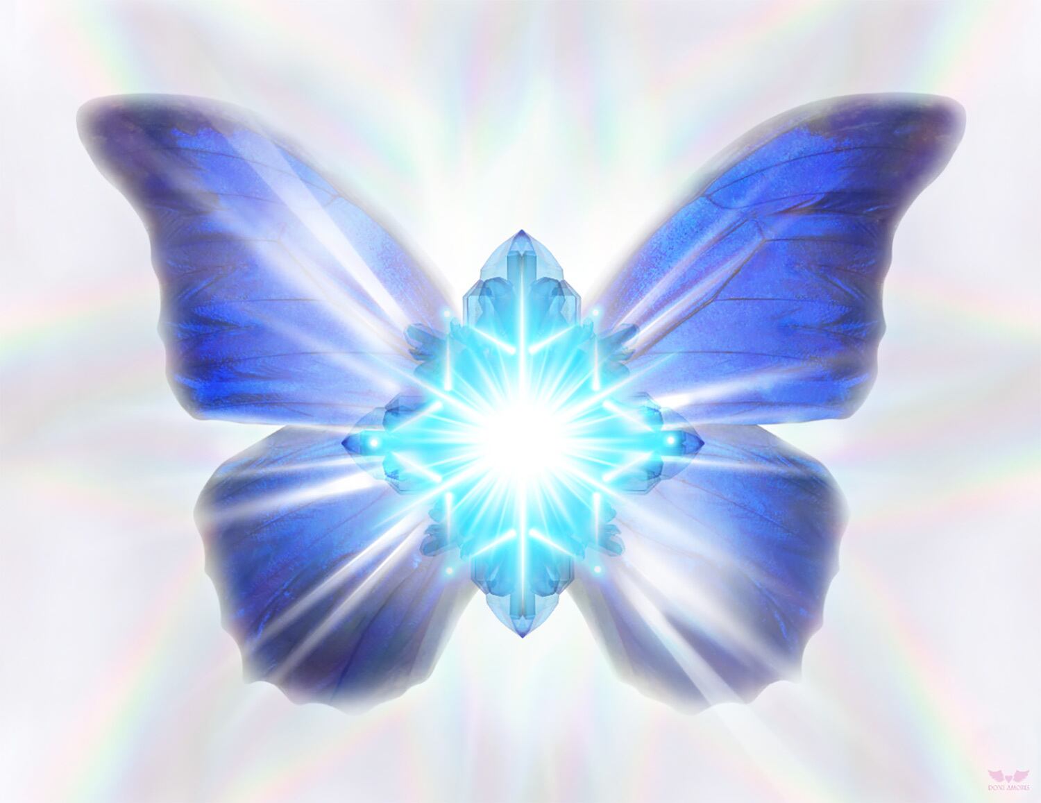 デザインの中には、神聖な誕生と再生のエネルギーを宿す、光り輝く蝶が現れます。それは、変容の助産師としてのマリアの役割を映し出しています。蝶が最適なタイミングで羽化するように、マリアの周波数は、癒しとアセンションの道が神聖な時の流れの中で自然に開くよう、あなたを抱き支えてくれます。