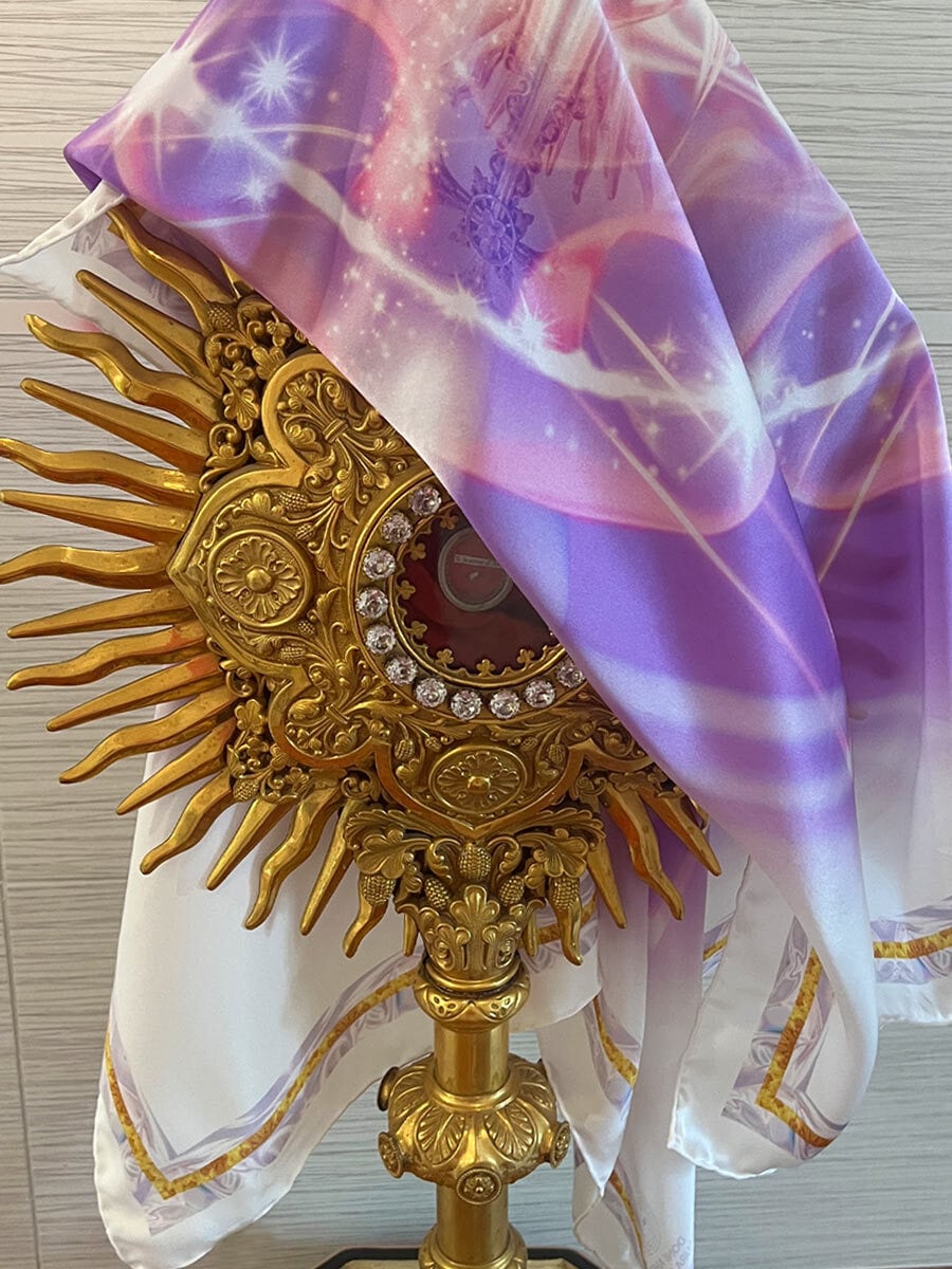 私たちはまた、ジャンヌ・ダルクの聖遺物、彼女の鎧の隣にあった布のエネルギーも加えました。これは、私たちが現在経験している大きな変化の時代の到来に向けて、神聖な守護と勇気をもたらしてくれるでしょう。このスカーフを身に着けるすべての人に、守護の祝福があります。